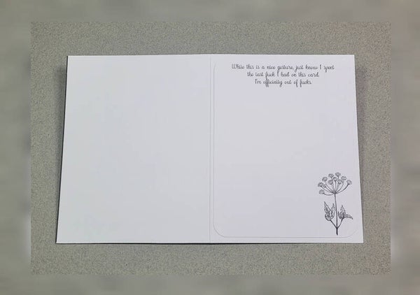 While this is a nice gesture, just know I spent the last f**k I had on this card. I'm officially out of f**ks.